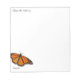 Papillon dans le jardin jetant une ombre portée sur ces blocs-notes avec un étiquette pour identifier le papillon monarque. Personnalisez le bloc-notes "Du bureau de ..." avec votre nom ou le nom d'un destinataire de cadeaux.