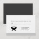 Elégante Black Butterfly Response / Rsvp Card dispose d'un élégant papillon noir avec des ailes déployées et une paire d'antennes bouclées et est idéal pour les futurs mariages, fiançailles ou toute autre occasion. Carte de correspondance également disponible. La bordure noire et grise peut être enlevée si vous le souhaitez. Cliquez sur l'image ci-dessous pour obtenir la version agrandie (4,25 po x 5,5 po). © Matin 6