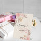 Un doux arrière - plan beige décoré de roses roses, de fleurs, d'herbe de pampas et d'un grand papillon. Avec le texte : faveurs. Prenez-en un !