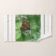 Papillon monarque orange et noir et fleur rose et verdure contre arrière - plan blanc. Joli rose pastel et vert sauge et couleurs et rayures géométriques. Photographie originale et\ Design par TamiraZDesigns.
