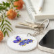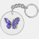 Bijou, bleu, saphir, papillon fleur scintillant avec aile décorée de fleurs bleues précieuses avec feuilles dorées sur fond blanc.