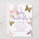 Papillon violet Baby shower Invitation fille, Baby shower or rose