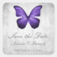Mariage élégant et simple Enregistrer les Stickers Date avec un Papillon violet contre un arrière - plan gris grinçant. Ce design est un choix unique pour annoncer un mariage moderne. Facile à customiser avec vos détails mariages. Cliquez sur "Customiser" pour trouver d'autres options de personnalisation.
