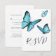 Carte RSVP mariage papillons aquarelle bleue. Choix élégant pour les mariages d'été. Partie d'une collection de mariage. Carte avec choix de repas.