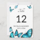 Papillons aquarelle bleue Carte de numéro de table de mariage. Choix tendance magnifique pour les mariages d'été. Fait partie d'une collection de mariage.
