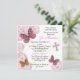 Belle et détaillée Papillon et fleurs Baptême Invitation avec papillons tourbillonnants et fleurs rose douce avec motif tourbillon vert pâle. Idéal pour une communion ou une confirmation. Illustration tirée à la main par McBooboo.