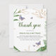 Une magnifique note de remerciement élégante à envoyer à des amis et à la famille, qui vous ont montré l'amour, la gentillesse et le soutien pendant votre temps de deuil. Doté d'un luxueux feuillage vert aux accents faux or et de papillons bleus superbes sur un arrière - plan blanc classique. Tout le texte peut être personnalisé.