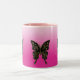 Impression de trois gros papillon noir et or sur un arrière - plan de dégradé rose.