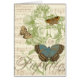 Un design floral vert et de la partition font arrière - plan à un trio de papillons dans cette pièce de Vision Studio. Le mot français papillon est également emblaqué au fond de la pièce. Si vous aimez les papillons, la nature, ou tout comme vous entourer de beauté, c'est l'impression pour vous!