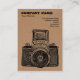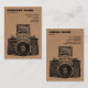 Eine Visitenkarteschablone mit einem Pappbild-Beschaffenheitshintergrund und einem mutigen schwarzen Ostdeutschen Kameramotiv. Firmennamen, Geschäftsart und Adresse auf der Front mit Namen, Stellenbezeichnung, Telefonie, Netz und E-Mail-Adressen auf der Rückseite, mit dem gleichen Kameramotiv. Diese Karte kann auch weiter besonders angefertigt werden.