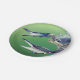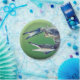 Dieser Pappteller kennzeichnet eine große blaue Krabbe auf der Front.