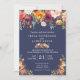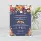 Die Hochzeitseinladung passt zu unserer Paprika Burgund Floral-Kollektion, die mit einem Blumentropfen von Aquarellen aus prächtiger Bordeaux-, Gold-, Korallen-, Rost- und Blattpalette besticht, die die Einzelheiten der Hochzeitseinladung mit marinebasischem Hintergrund umrahmt. Der gesamte Text ist vollständig anpassbar.