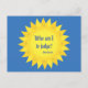 Auf dieser Postkarte finden Sie ein Zitat von Papst Franziskus in einer gelben Sonne auf blauem Hintergrund. Die Farben sind Teil der Waffenmütze des Pontifex. Der Text lautet: Wer soll ich beurteilen? Es ist ein Beispiel für die Größe und Demut dieses ganz besonderen Mannes.