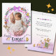 Votre photo de bébé s'adapterait facilement à ce carte photo magnifiquement conçu avec un lapin, des poussins et de jolies fleurs autour d'un modèle en forme d'oeuf pour votre photo. Le côté arrière a un accueil avec plus de lapin et d'illustrations de poulet. C'est une carte unique, et tous les objets ont été peints à la main. Joyeux Pâques !