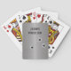 Plate-forme d'amusement des cartes de jeu standard, avec des graphiques d'un regard en aluminium balayé, avec trois trous de balle. Le texte gris, au dessus, est prêt à personnaliser pour votre caverne d'homme, ou comme grande idée de cadeau.