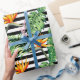 Tropischer Vogel von paradiesischen Blume und Blätter auf schwarz-weiß Streifen, dieses Packpapier ist schön für Hochzeiten, Brautparty, Geburtstage oder jeden besondere Anlass. WEITERE Designs in unserem Geschäft.
