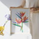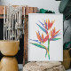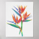 Tropischer Bird des Paradieses Zeichnend Poster. Blume mit orangefarbenem Grün und Blautönen. Kunst von Inanna Serene Smith.
