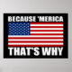 C'est l'original PARCE QUE "MERICA C'est pourquoi Poster! Avec une image de haute qualité du drapeau américain, et un mème patriotique très drôle. Le cadeau idéal pour la 4 juillet, la Journée commémorative, la Journée des présidents, la Journée des anciens combattants ou N'IMPORTE QUEL jour de l'année! Prenez le vôtre aujourd'hui de ce vendeur américain Zazzle Pro, et montrez-le avec fierté !