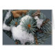 un morceau de neige et de feuilles rouillés sur une branche de sapin