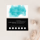 Les cartes de visite d'aquarelle chic arborent votre nom ou nom de société sur une illustration de l'encre blooming dans un turquoise tropical cool et lumineux. Ajoutez vos coordonnées complètes à l'arrière en blanc sur noir riche. Inclut votre offre de fidélité personnalisée (présentée avec "profitez de 20% de rabais sur n'importe quel service après cinq visites"), et six punchouts.