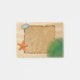 Ancien papier parchemin avec feuille de palme, pierre et étoiles de mer sur sable de plage arrière - plan.