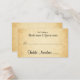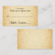 Ein Hochzeitstisch, der die Platzkarte mit einem gedruckten Hintergrunddesign im Stil Vintager Altpapiere gestaltet, das einem Pergamentmuster aus Imitaten ähnelt. Der Hintergrund ist ein Muster in gelblich beige/braun Farben. Es gibt einen stylischen schwarzen Text, der personalisiert werden kann. Sitzplätze und Tischnummern für Hochzeitsgäste.