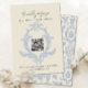 Invitez vos invités à répondre avec élégance et facilité en utilisant cette carte de réponse RSVP coordonnée. Conçue pour s'harmoniser avec notre collection "Poire Parfaite" de damas de campagne française, cette carte présente un cadre de damas dessiné à la main avec une option de code QR moderne pour les réponses numériques. La typographie raffinée et la palette de bleu doux allient un style intemporel à une commodité contemporaine. Personnalisez avec vos propres détails de RSVP et associez-la à des invitations et accessoires assortis de la collection complète pour une célébration de mariage cohérente.