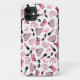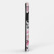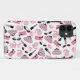 Ein iPhone 5 Fall, der einen Entwurf besteht aus rosa und schwarzer Retro Katzenaugen-Sonnenbrille, rosa Änderung kennzeichnet, schürzt mit grauen Tupfen, rosa Kupplung schürzt mit schwarzem Bogen, rosa Lippenstiften, rosa Edelsteinen und Flasche Parfüm mit rosa Zerstäuber.