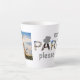 Zeigen Sie Ihre Liebe der Stadt der Lichter (und der Liebe) mit diesem Design, in dem Sie die berühmten Pariser Sehenswürdigkeiten (Sacré-Coeur Basilica, einen Tisch in einem Straßencafé im Stadtteil Beaubourg, den Triumphbogen, den Eiffelturm und die Kathedrale Notre-Dame) anhand der Buchstaben zeigen, die das Wort Paris ausmachen. Ich habe auch einen oberen Hut hinzugefügt, die Worte "mehr" und "bitte", und ein Lächeln in simuliertem silbernen Glitzer; auch, zu den links, ein Foto des Eiffelturms.
