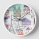 Die Uhr wird in runder Form mit einem niedlichen Paris-Druck angezeigt. Passen Sie diese Uhr an oder kaufen Sie, wie es ist. www.freepik.com
