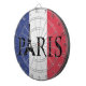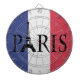 Pariser Textanzeige mit Eiffelturm-Dekoration auf französischem Flaggenhintergrund