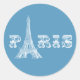 Das Wort PARIS in einem hübschen Schriftart mit dem coolen Blau des Eiffelturms ist ein schöner Aufkleber. In meinem Zazzle-Shop sind passende Artikel und viele Pariser Designs erhältlich