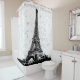 Dieser Duschvorhang zeigt eine Grafik des Eiffelturms mit einer alten Pariser Landkarte im Hintergrund.