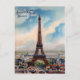 Diese hübsche, Vintage französische Postkarte besticht durch ein farbenfrohes Bild des Eiffelturms und der umliegenden Stadt Paris.