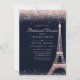 Paris Eiffel Tower Rose Gold Sparkle Probe Einladung. Dieses elegante Design besticht durch einen glänzenden Eiffelturm mit trendigen Konfetti. Personalisieren Sie dieses individuelle Design mit Ihren eigenen Details.