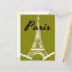 "Paris" im modernen Script-Schriftart mit grünem Damast-Hintergrund und weißer Eiffelturm-Silhouette. Ooh-la-la-la!