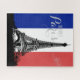 Dieses Chicpuzzlespiel kennzeichnet eine schwarze Eiffelturmgraphik mit "Paris" im modernen Skript und in einem Namen, damit Sie personifizieren. Der Hintergrund ist das Rote, das Weiß und die blauer Sumpf-Schwertlilie von Frankreich. Entworfen durch weltberühmtes Künstler ©Tim Coffey.