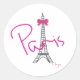 Paris Eiffelturm mit rosa Bug Runder Aufkleber