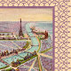 Dieses elegante und ungewöhnliche Viktorianische Visitenkartenbild, das in einer schönen Lavendelfarbe überschwemmt ist, beschreibt das Layout der Expo 1900 in Paris, Frankreich. Eine Sammlung von Booten fährt flink entlang der Aquamarine blauen Seine. Ein farbenfroher, rosa getönter Himmel ergänzt die sanften Lavendelfarben der zentralen Illustration.