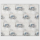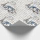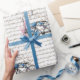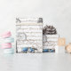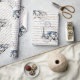 Ein großes Vintages Fahrrad, das in einem Spray des Blaus drapiert wird, vergessen, dass ich nicht Blumen mit dem Eiffel-Turm im Hintergrund und in einer handgeschriebenen Paris-Adresse und Poststempel von einem alten französischen Buchstaben Set gegen Text von Victor Hugo "Notre Dame DU Paris bin,", zum dieses reizenden literarischen und französischen themed Verpackungspapiers zu machen. Zusammenpassende Einzelteile und andere Vintage Paris-Entwürfe sind in meinem Zazzle Speicher verfügbar.