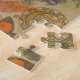Vintager Pfauenflapper - Diese Paris-Flapper-Collage enthält viele lustige Vintage-Bilder, schön für die Wohngestaltung arrangiert, die ein buntes Vintages Geschenk erfordert. Das Bild enthält eine Flapper Frau, die auf einen Schmetterling, einen Pfau und eine Libelle hinabschaut. Im Hintergrund befindet sich der Eiffelturm und andere Parisbilder. Deko-Farben aus der Antike sind in schlauen Grüntönen und sanften orangefarbenen Korallen gehalten, perfekt für dieses Dekoratorstück, um Ihren Lebensraum zu beleben.