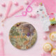 Vintager Pfauenflapper - Diese Paris-Flapper-Collage enthält viele lustige Vintage-Bilder, schön für die Wohngestaltung arrangiert, die ein buntes Vintages Geschenk erfordert. Das Bild enthält eine Flapper Frau, die auf einen Schmetterling, einen Pfau und eine Libelle hinabschaut. Im Hintergrund befindet sich der Eiffelturm und andere Parisbilder. Deko-Farben aus der Antike sind in schlauen Grüntönen und sanften orangefarbenen Korallen gehalten, perfekt für dieses Dekoratorstück, um Ihren Lebensraum zu beleben.