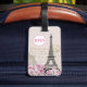 Dieses wunderschöne Gepäckanhänger besticht durch einen Vintagen zeichn des Eiffelturms in Paris mit rosa Blume. Personalisieren Sie Ihre eigenen Monogramme oder Initialen.