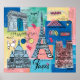 Global Travel II by Farida Zaman. Image feys the city of Paris, France with various famous landmarks and elements of the city. SID23322 |