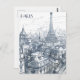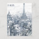 Diese Postkarte im handgezeichneten Stil zeigt neben dem Eifelturm einen Blick auf die Skyline von Paris.