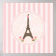 Lovely and super girly baby design featuring a brown Eiffel Tower with a pink ribbon on the top. Sweet pink flowers by the towers base, as well as pink stripes and other delicate ornaments.