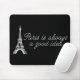 Der Schwarzweiss-Entwurf, der durch den berühmten Eiffel-Turm illustriert und auf handgeschriebenen stilvollen Schriftart "Paris geschrieben ist, ist immer eine gute Idee".