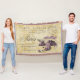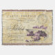 Die Vintage französische Postkarte zeigt eine wunderschöne Typografie, "Paris" und eine lila, gerippte Box mit lila Blume auf einem antiken Hintergrund