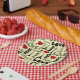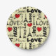 Pariser Textgestaltung für den Valentinstag mit roten Herzformen, Eiffelturm und Straßenlampen, die auf gelbem Hintergrund dekoriert sind