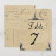 Der Eiffelturm in sepia und "carte postale" und Poststempel aus einer Vintagen französischen Postkarte, ein Hintergrund alter französischer Postkarten mit Postzeichen und Adressen in großartiger Handschrift und ein kleiner Vintager Vogel auf den Lilaks unten machen dieses schöne Design. Passen Sie Zahlen für so viele Karten an, wie Sie benötigen. Auf der Rückseite befindet sich die Postkartenhalterung. Viele passende Artikel und andere Vintage Pariser Designs sind in meinem Zazzle-Shop erhältlich.